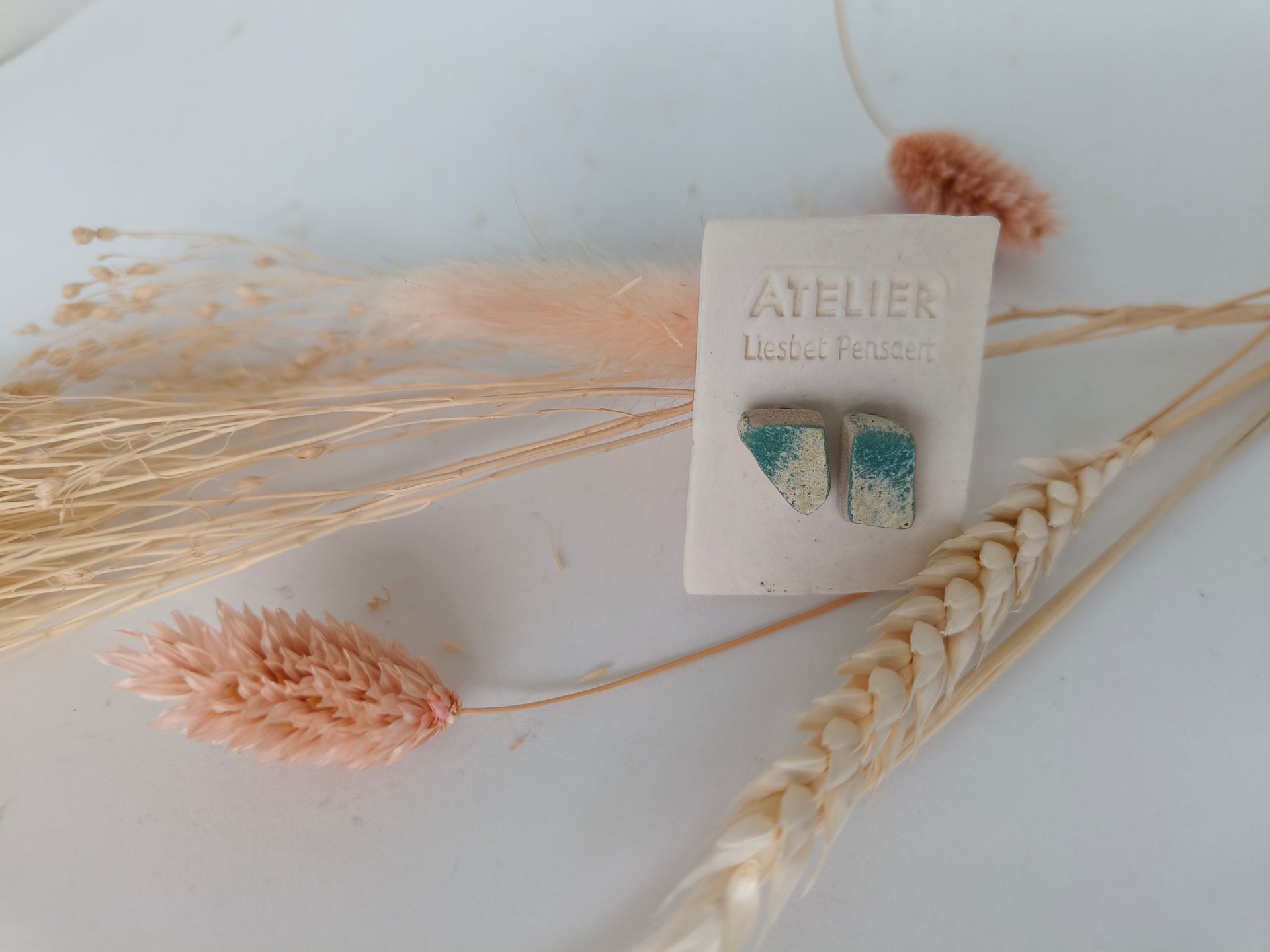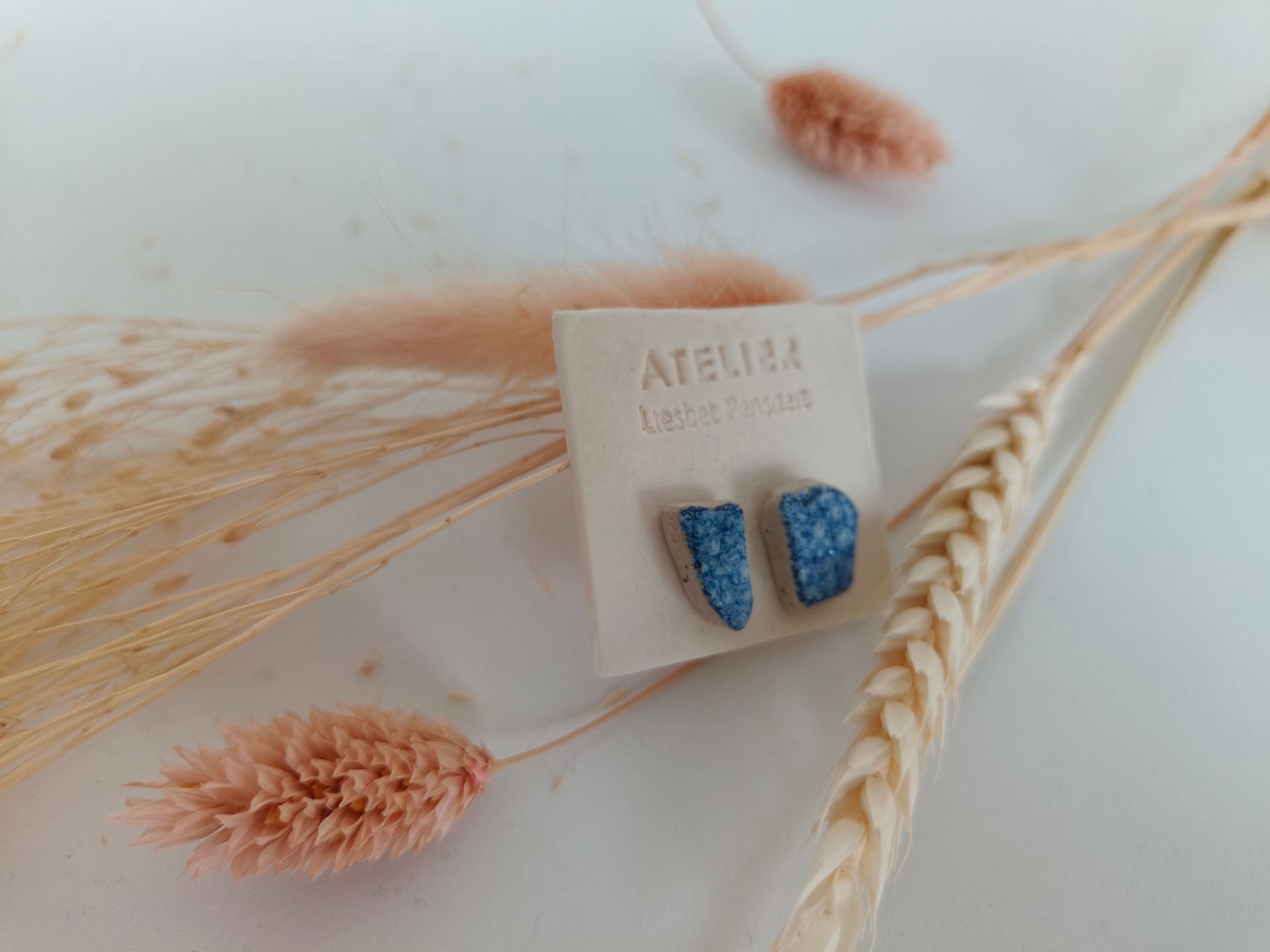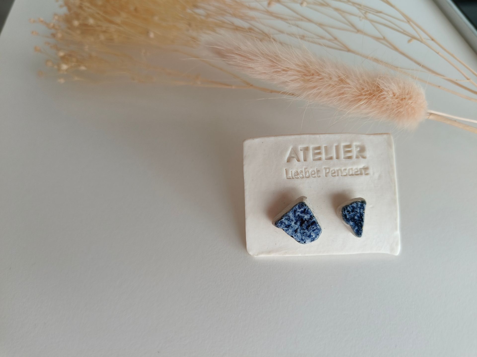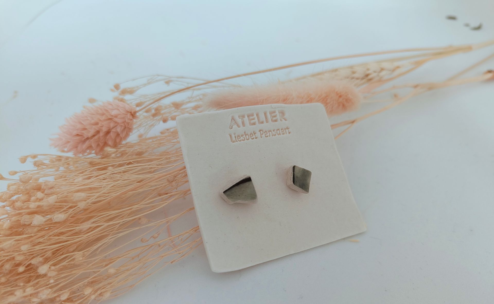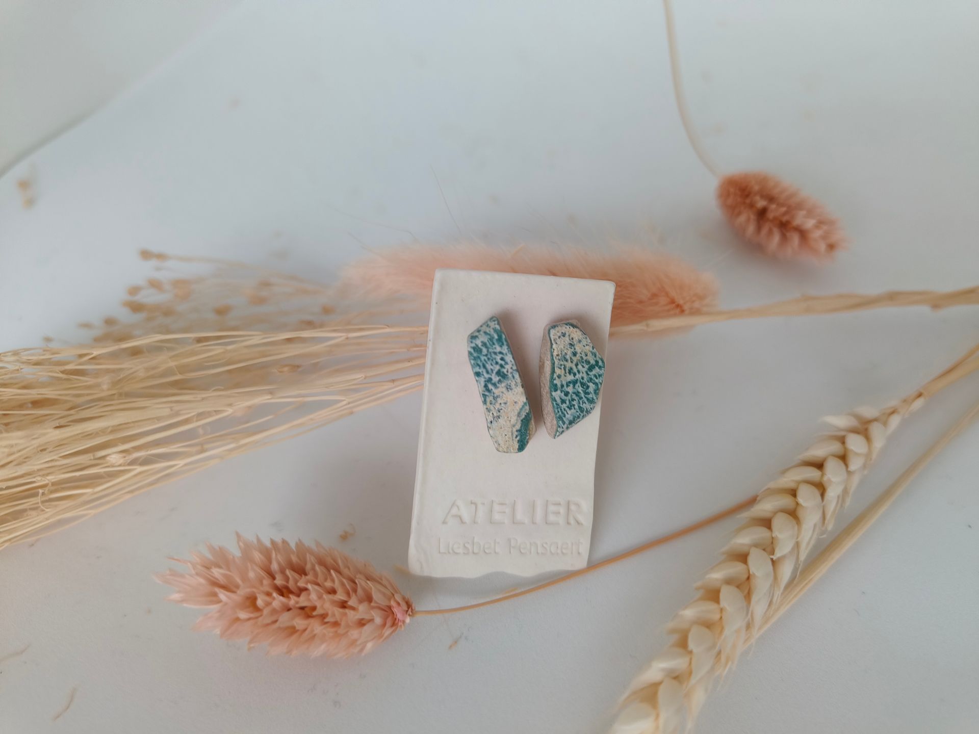 Oorbellen gemaakt uit gebroken stukjes van eigen gemaakte keramiek