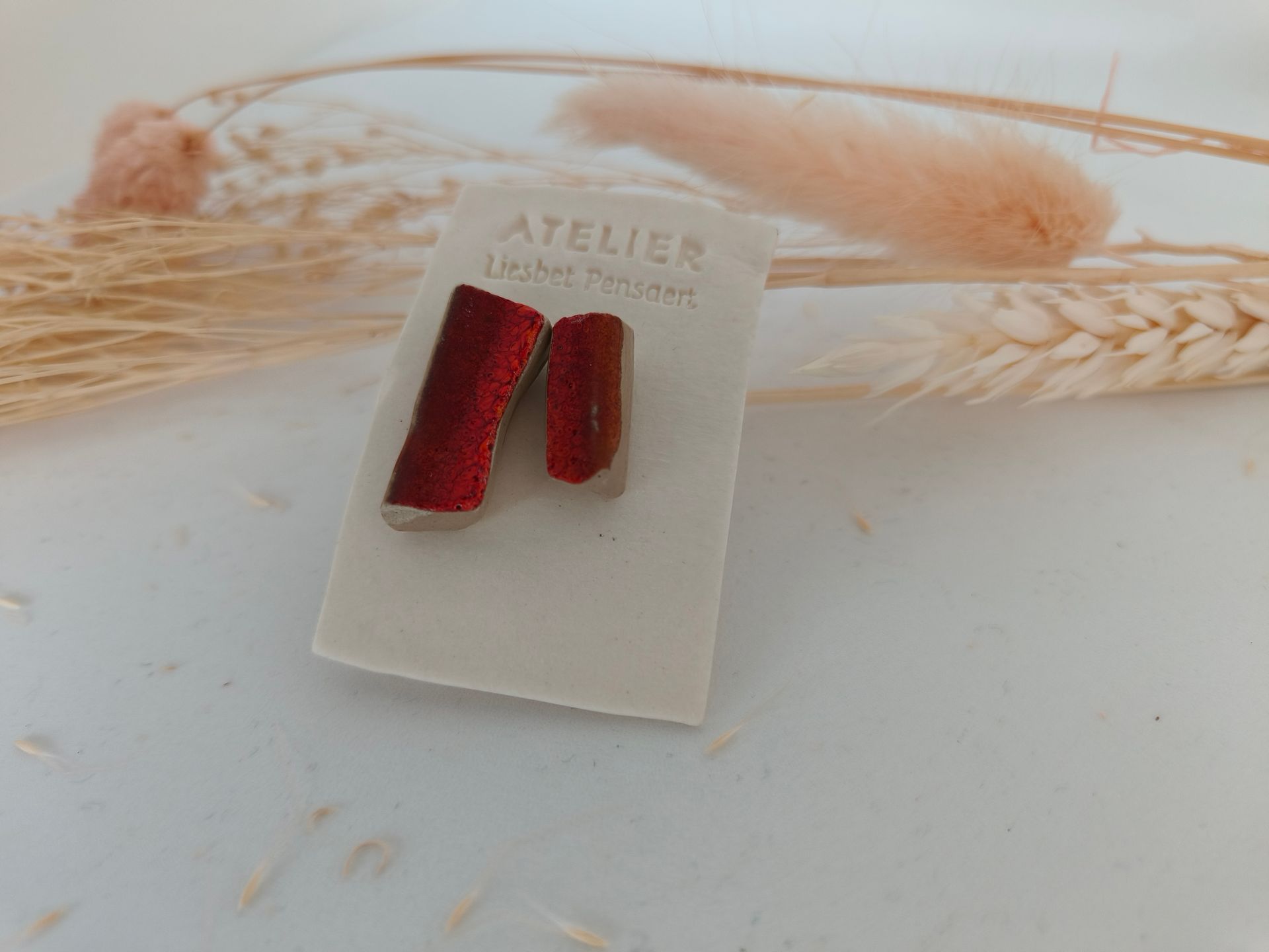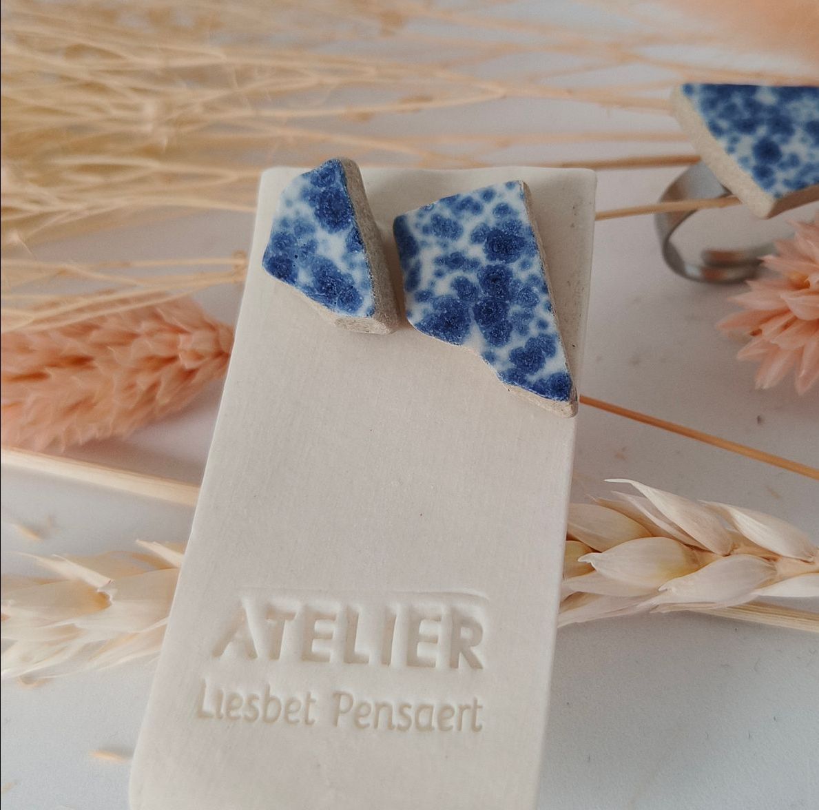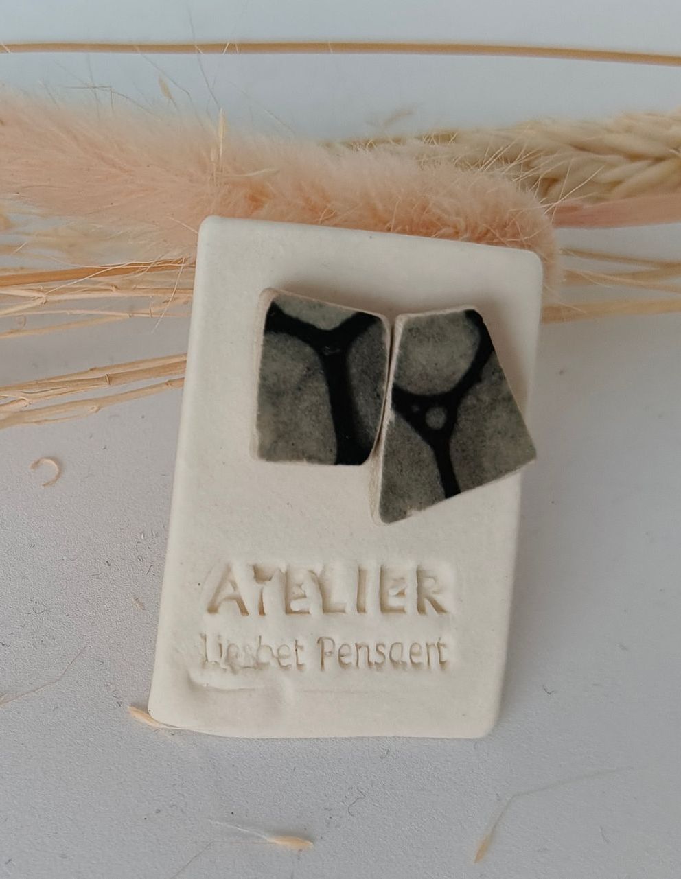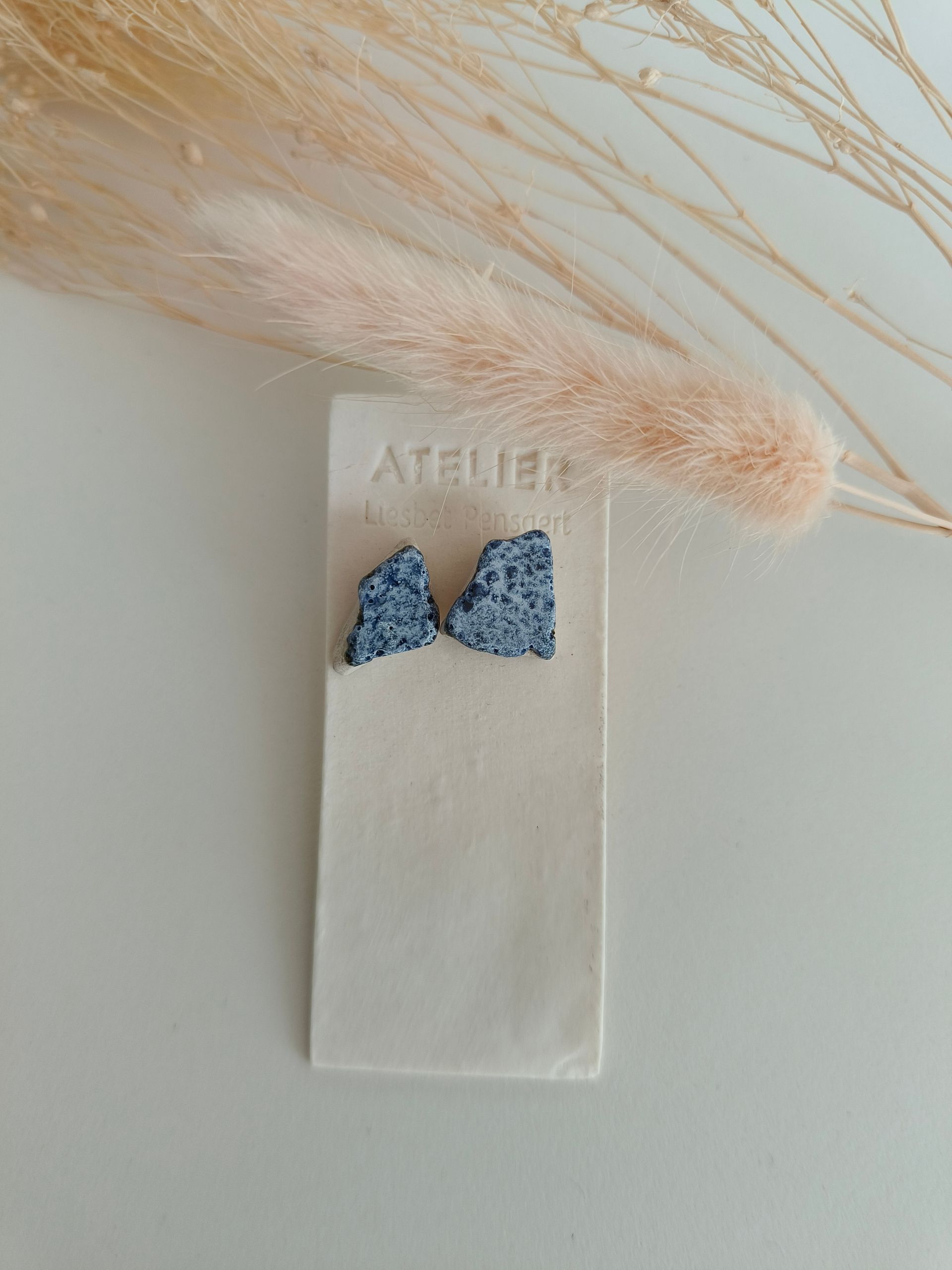 Oorbellen gemaakt uit gebroken stukjes van eigen gemaakte keramiek
