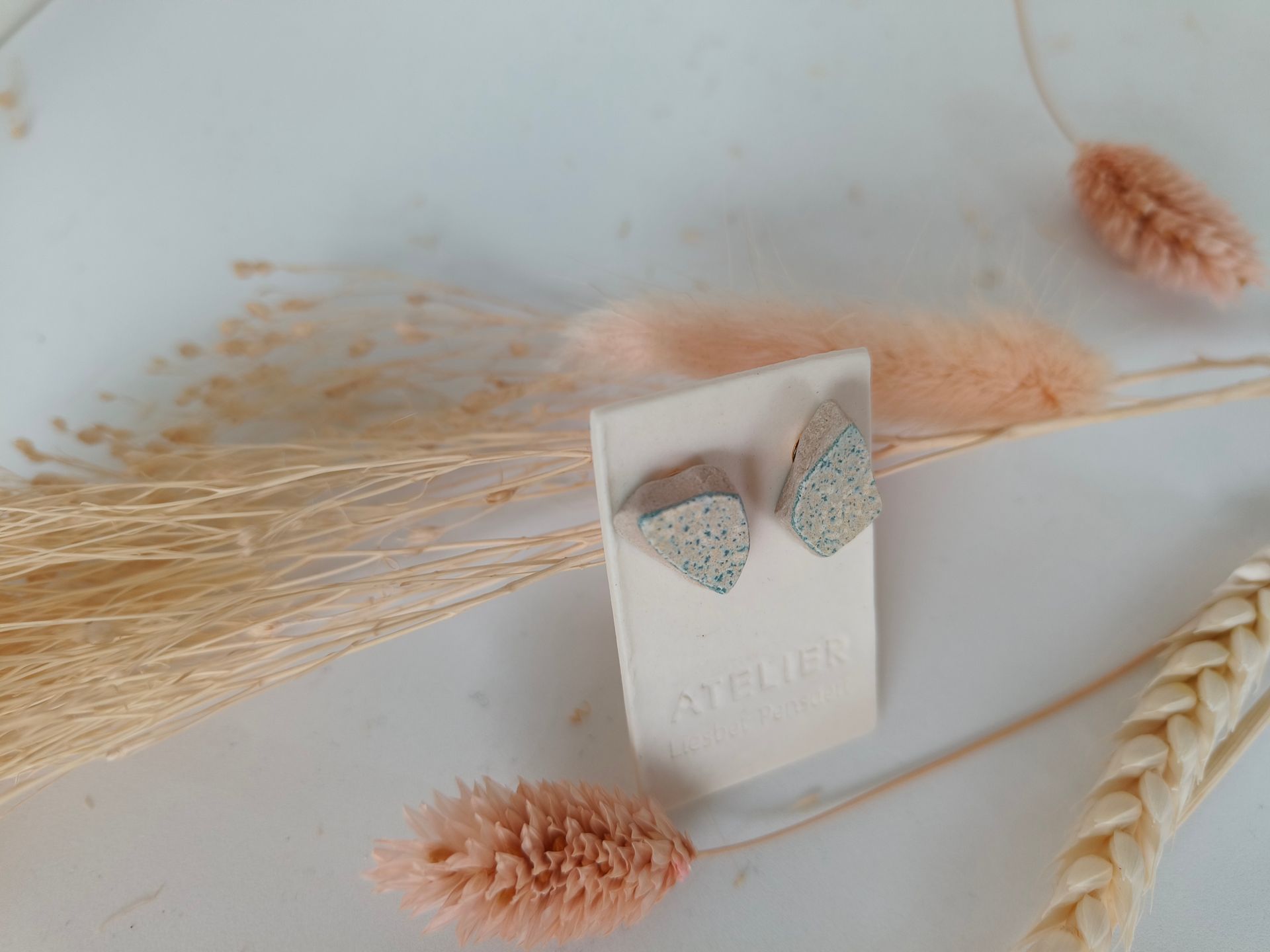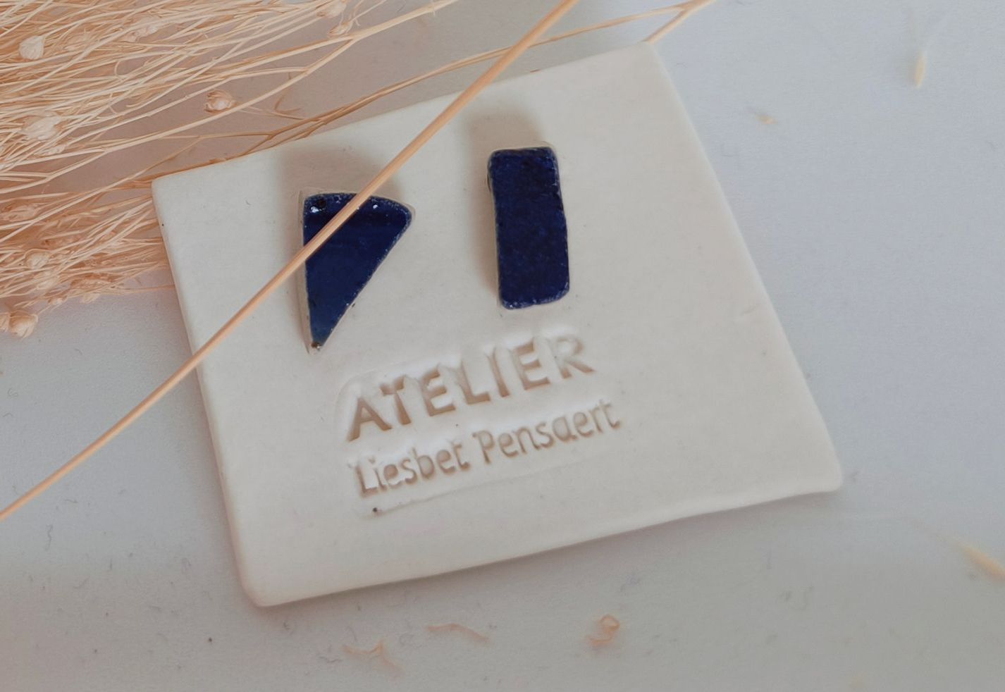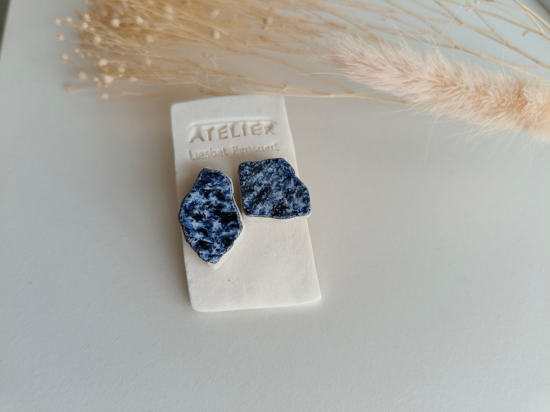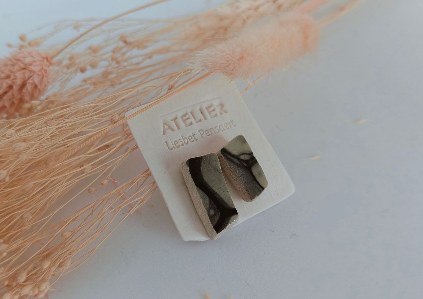 Oorbellen gemaakt uit gebroken stukjes van eigen gemaakte keramiek