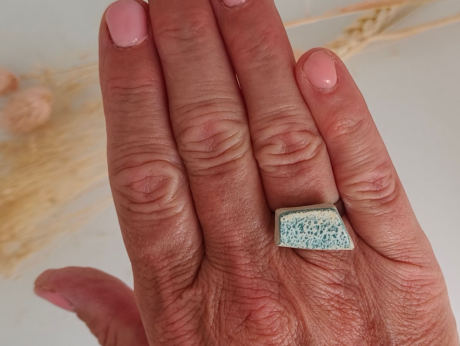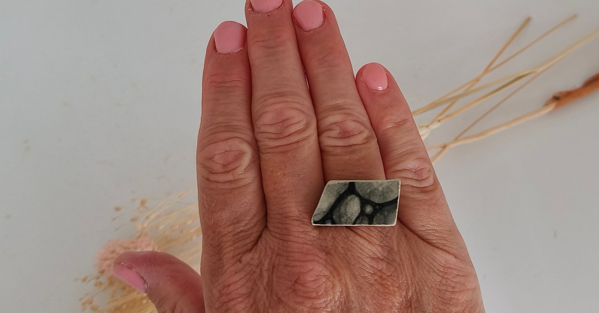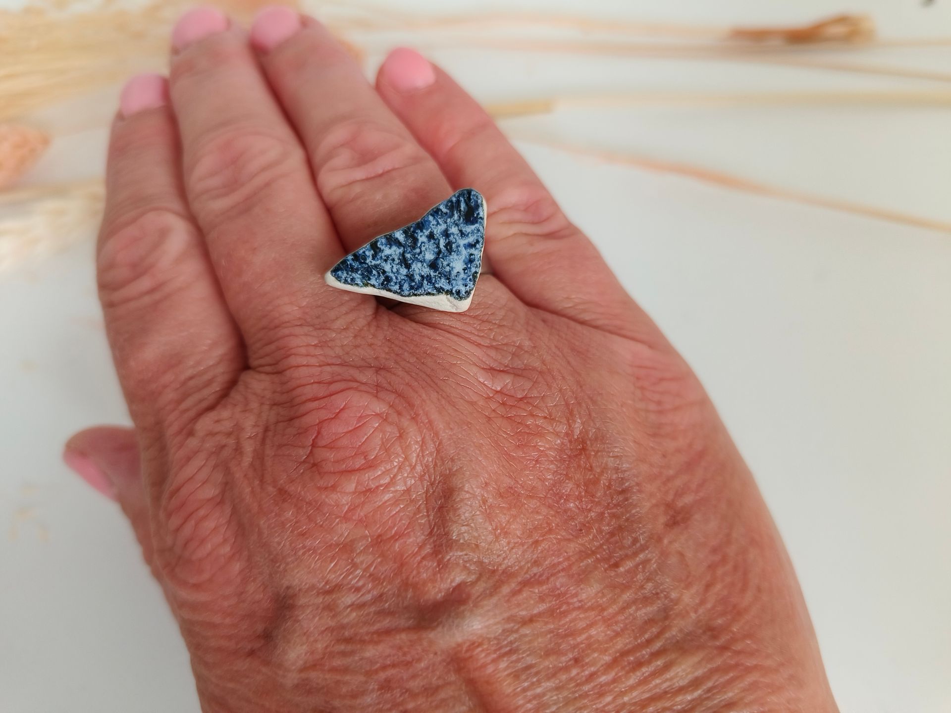 Ringen gemaakt uit gebroken stukjes van eigen gemaakte keramiek