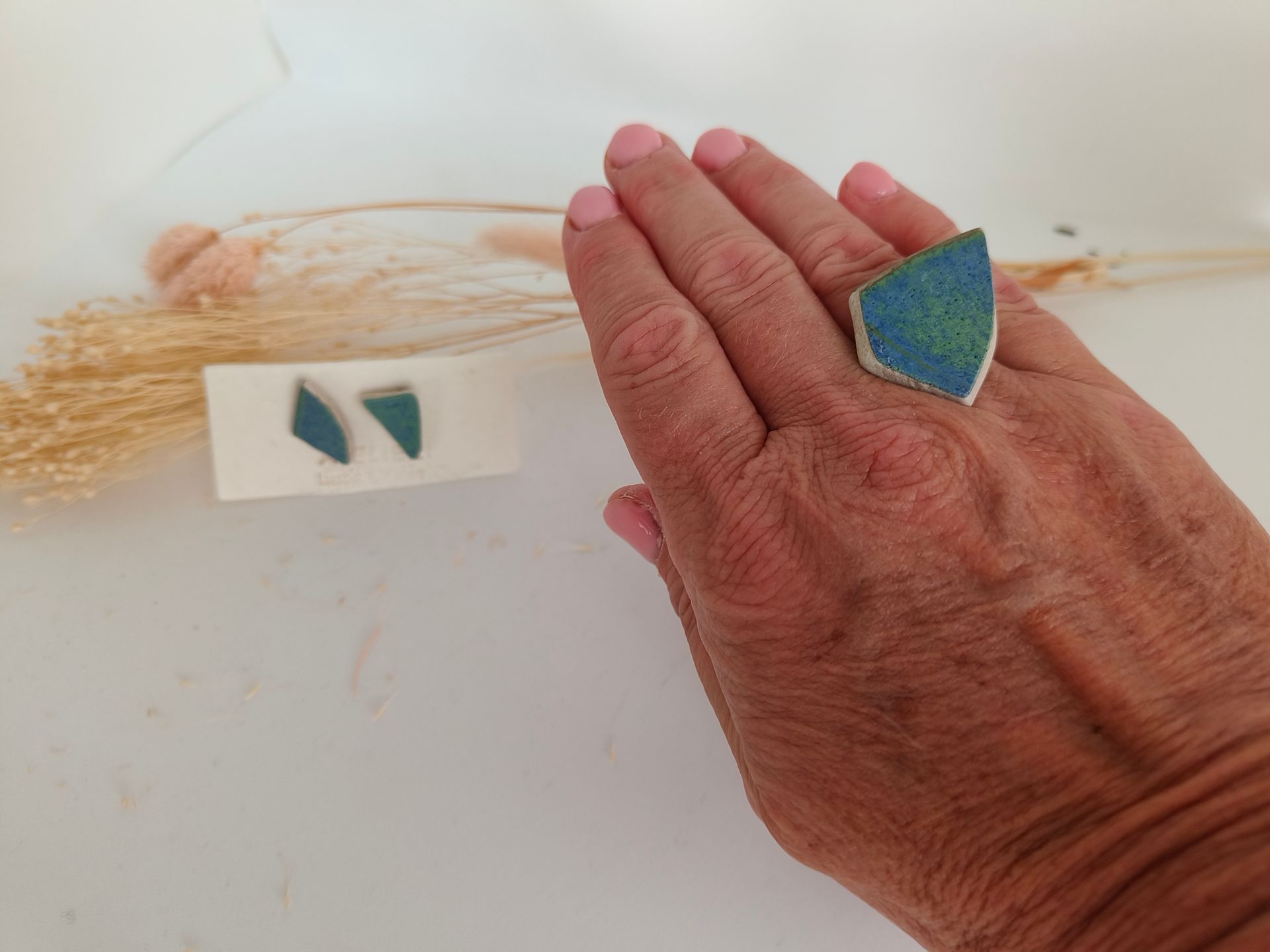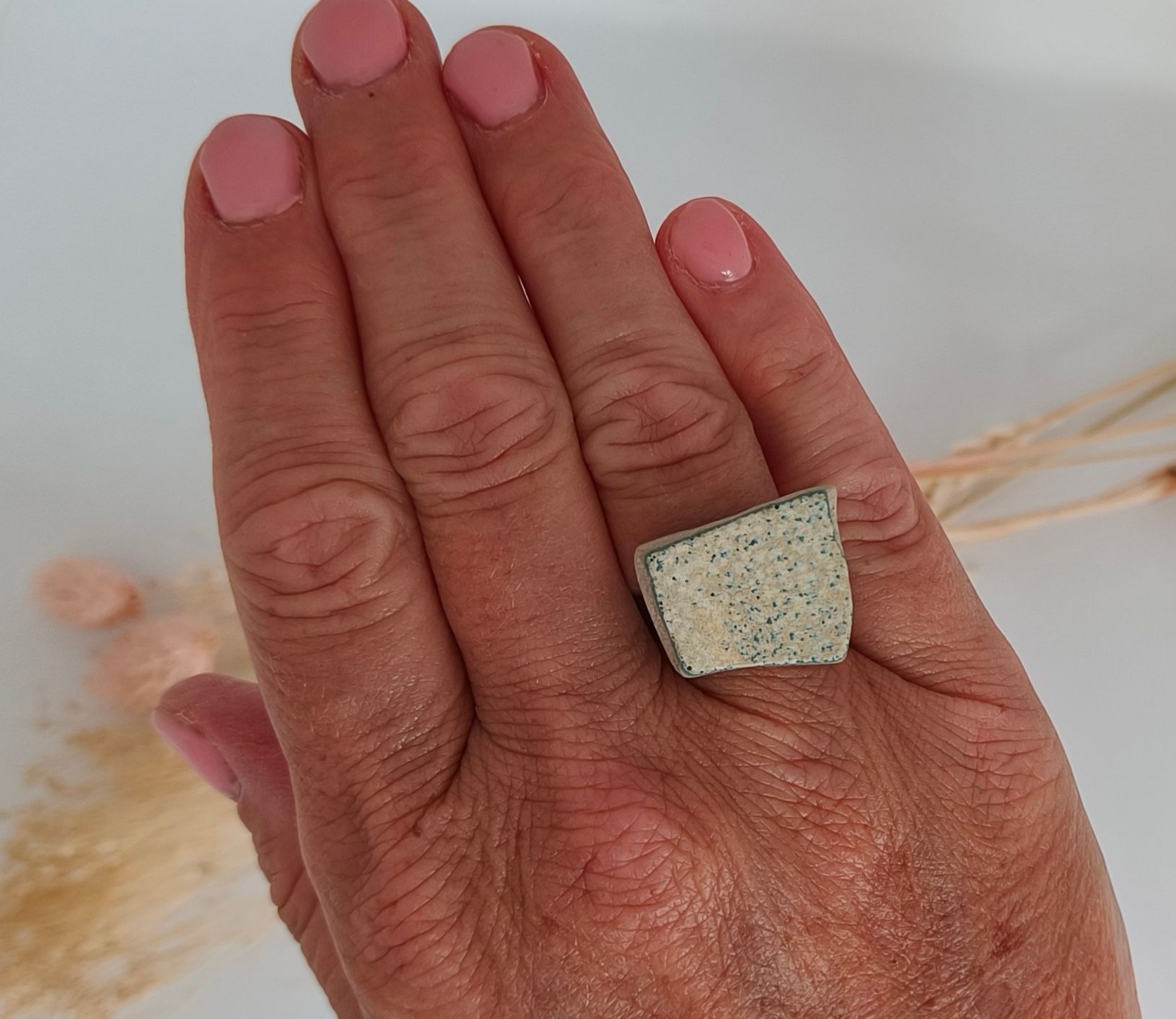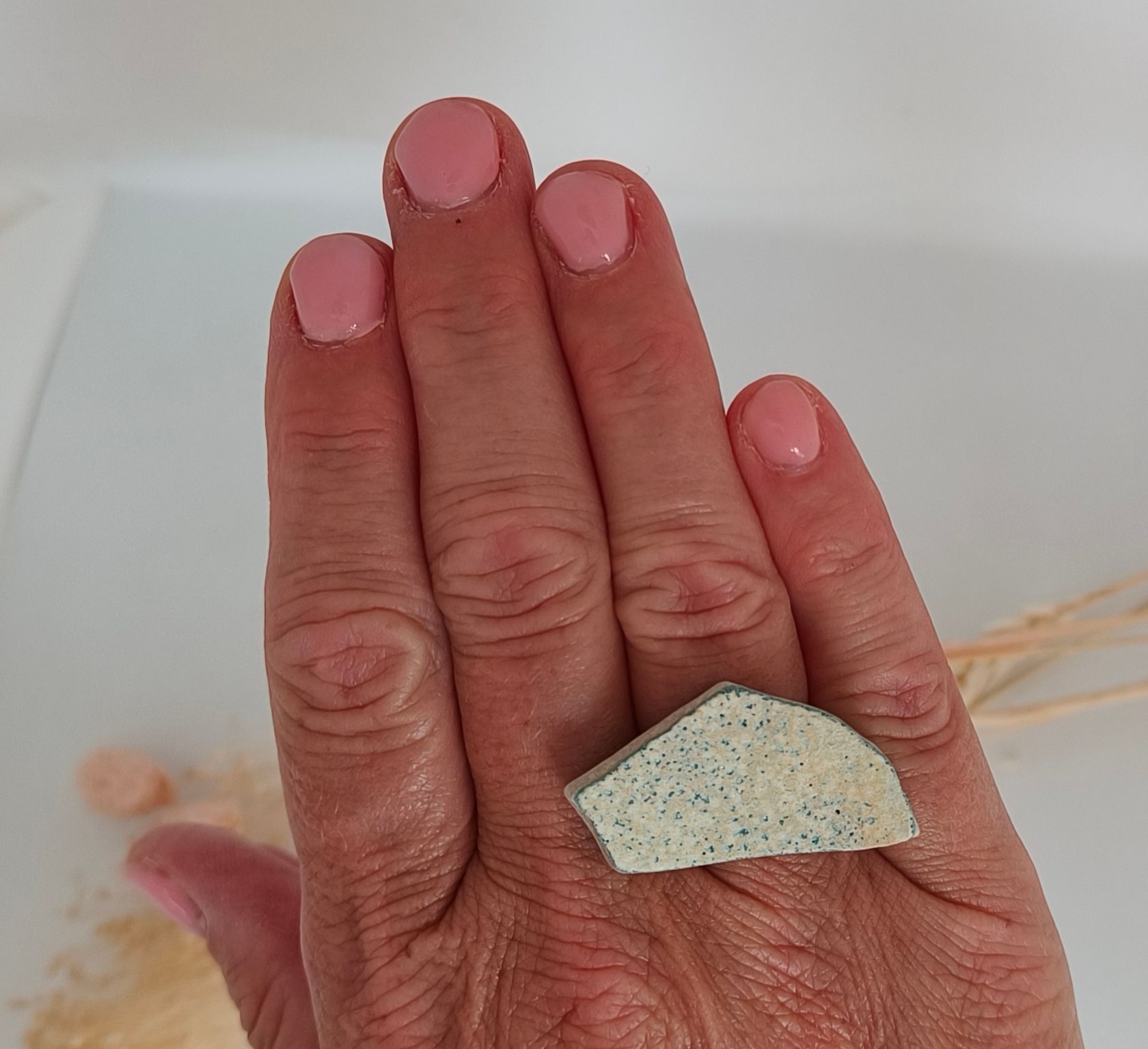 Ringen gemaakt uit gebroken stukjes van eigen gemaakte keramiek